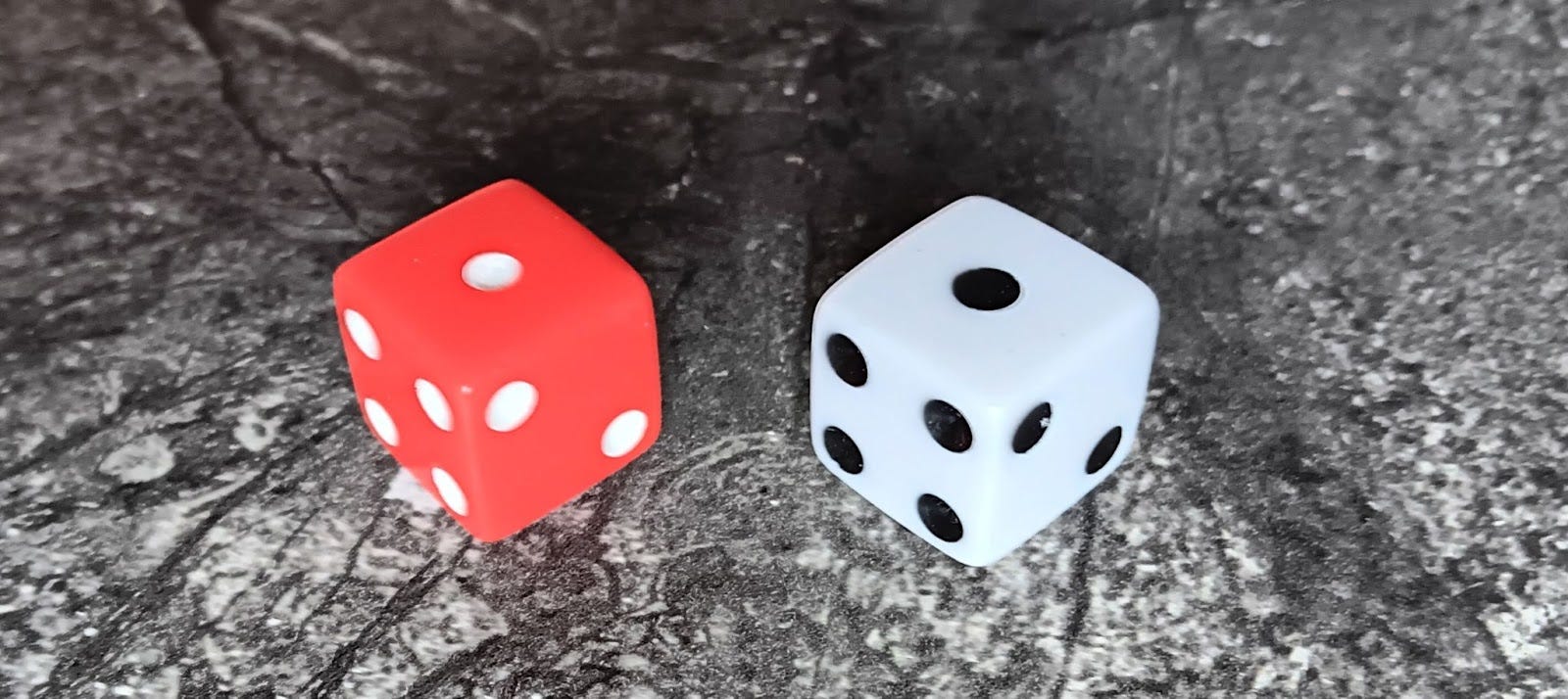 The first thing most people notice is the dice are two different colors. This happens often; when two things are more alike than they are different, the difference stands out. This phenomenon is often useful to us: it helps us spot a bad apple in a bag of healthy fruit, we can see the slower athlete among the faster, and we can find Waldo’s blue pants in that barber pole factory. Thus our perception is successful, and we swiftly assess these items as “red and white.”